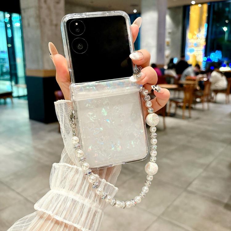 Funda para Teléfono Xiaomi Mix Flip con Textura de Carcasa Perlada de Tres Piezas y Pulsera (Beige)