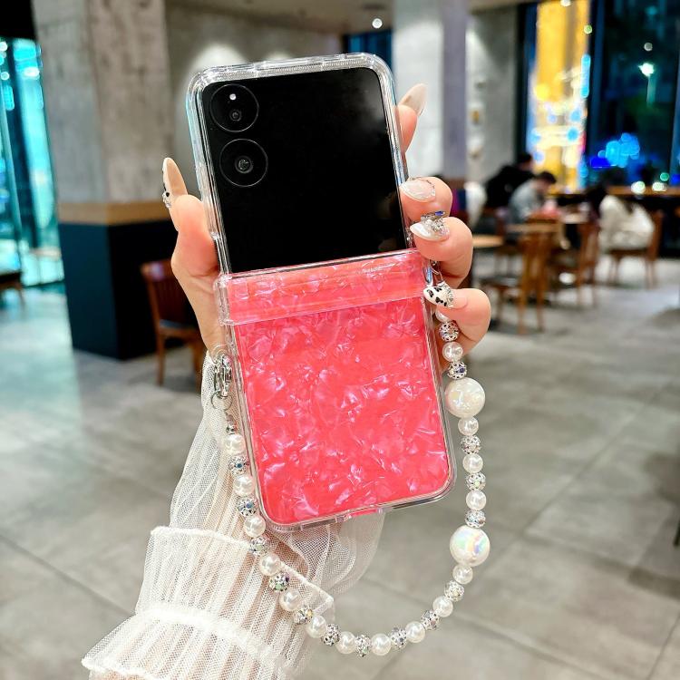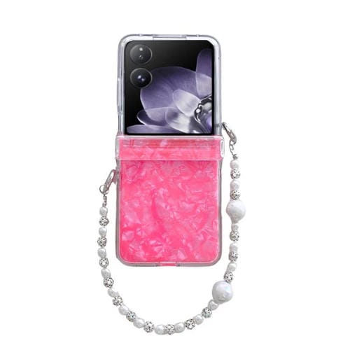 Funda para Teléfono Xiaomi Mix Flip con Textura de Carcasa Perlada de Tres Piezas y Pulsera (Roja)