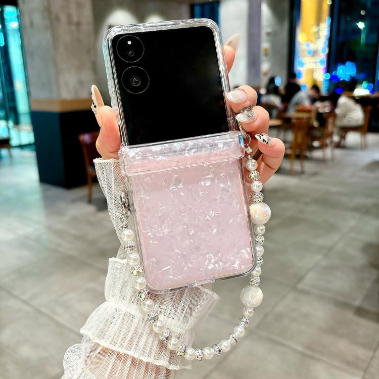 Funda para Teléfono Xiaomi Mix Flip con Textura de Carcasa Perlada En Tres Partes y Pulsera (Rosa)