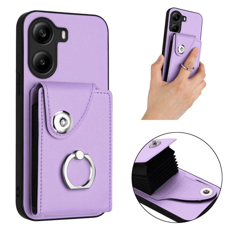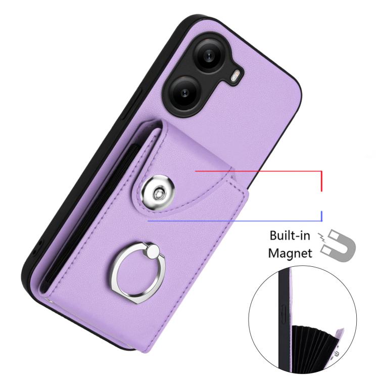 Funda para Xiaomi Poco X7 Pro con tarjetero y anilla para teléfono con cordón largo (morado)