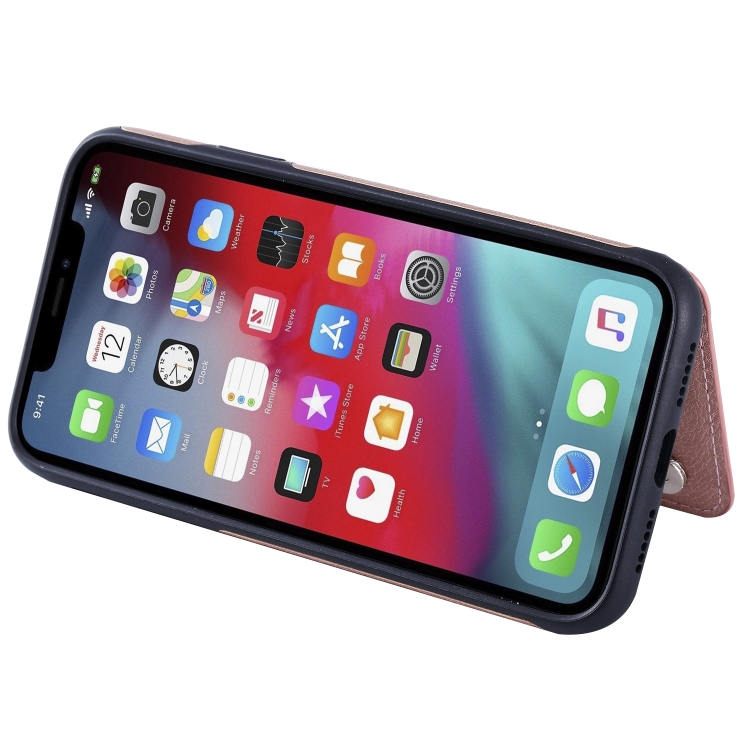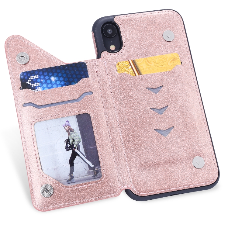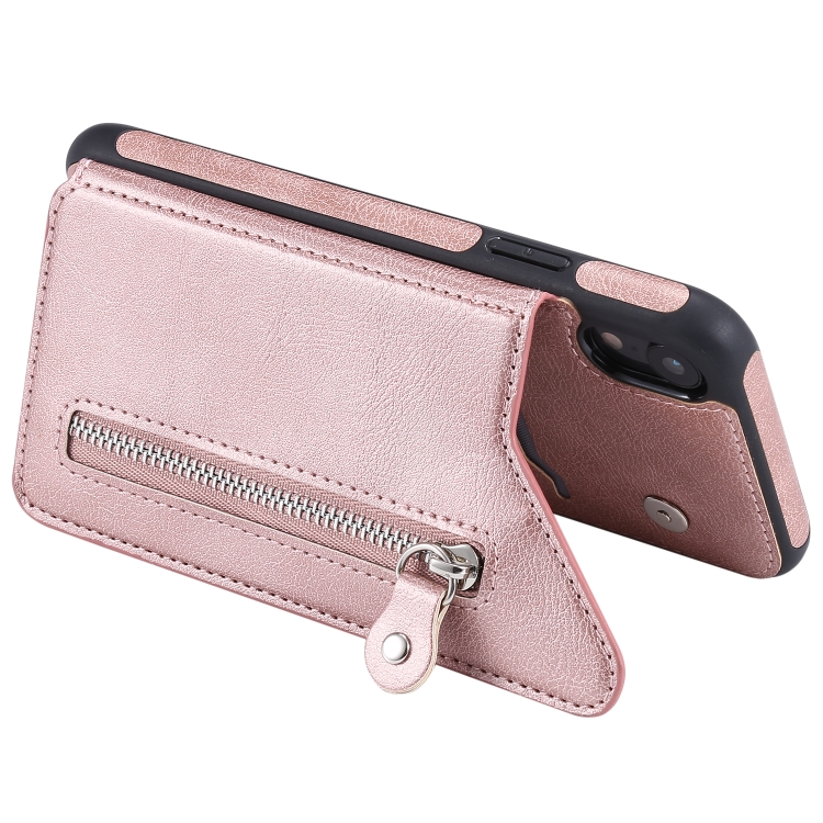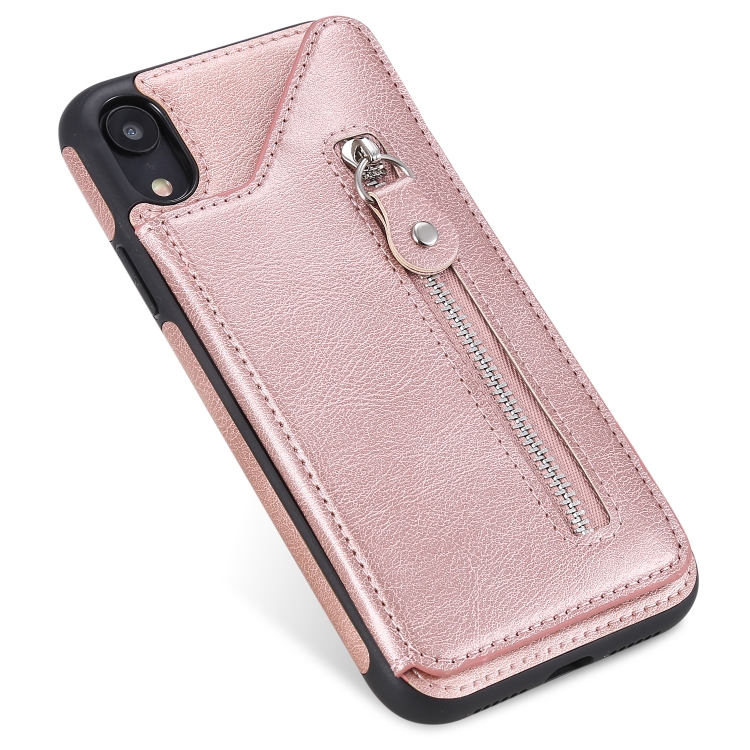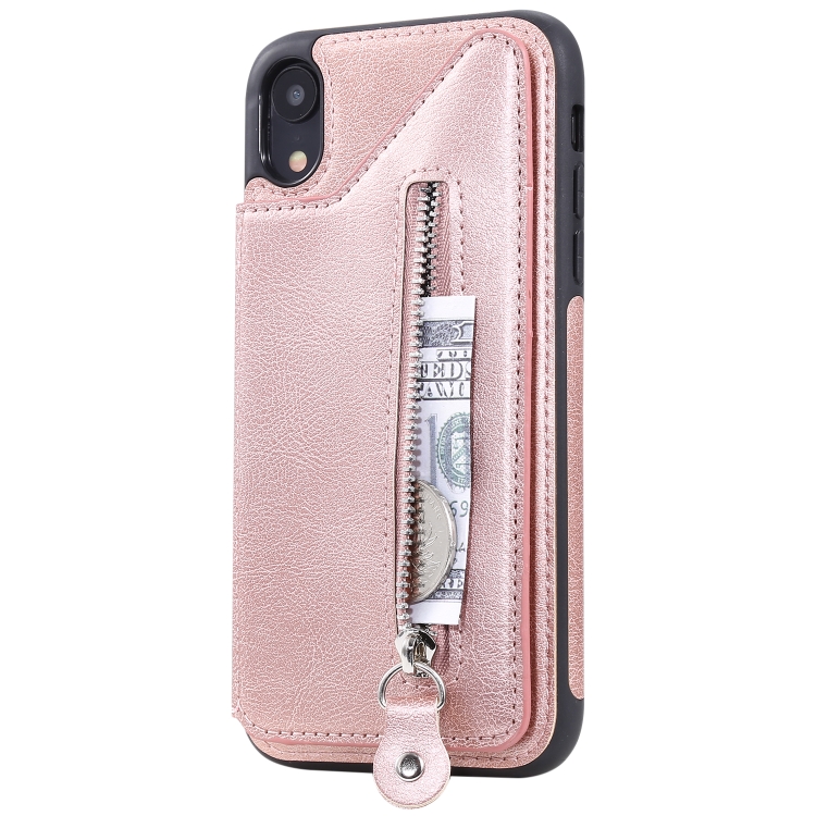 Funda Protectora para iPhone Xr a Prueba de Golpes con Cremallera y Doble Hebilla (Oro Rosa)
