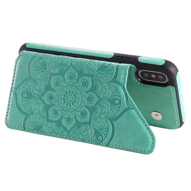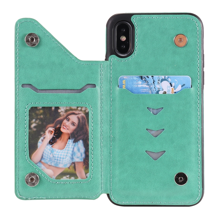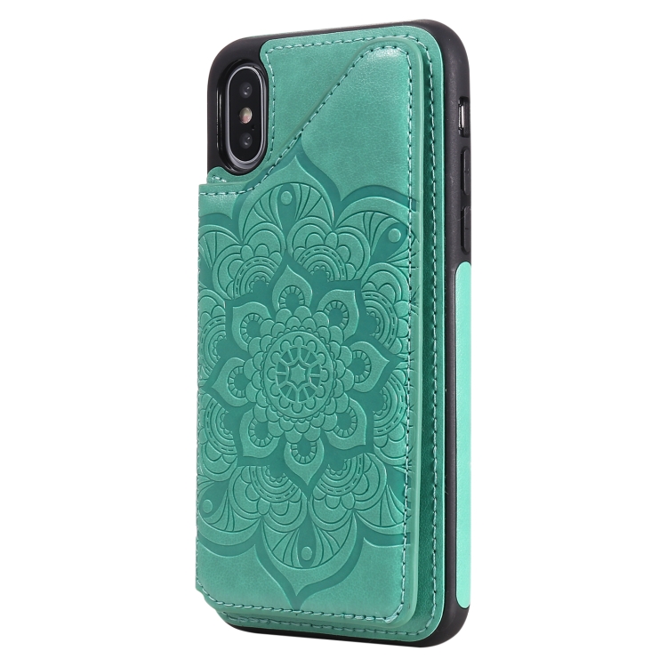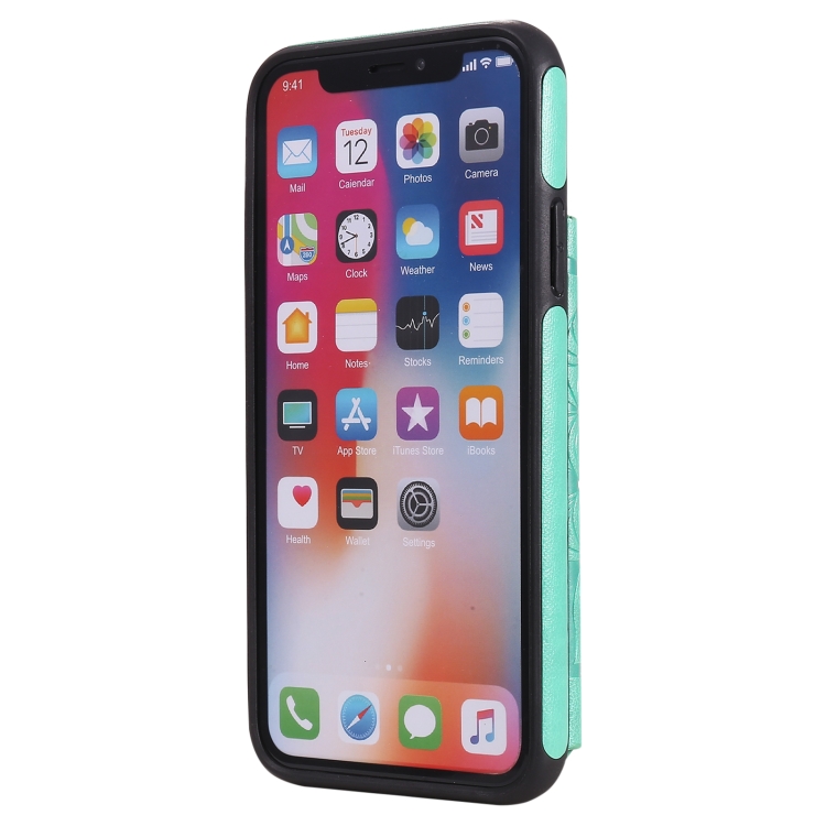 Funda Protectora iPhone X Xs Estampado Flores Soporte Tarjetas Marco Fotos (Verde)