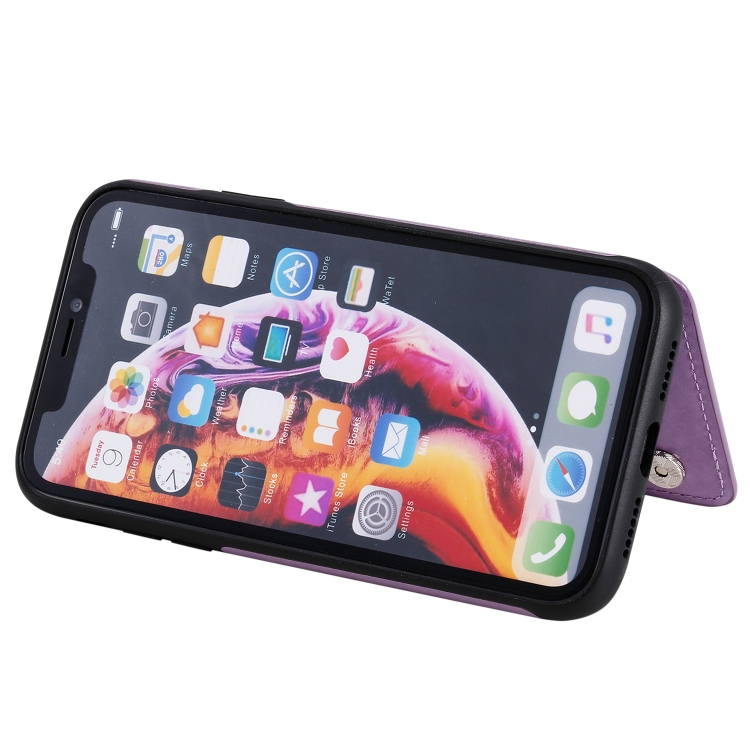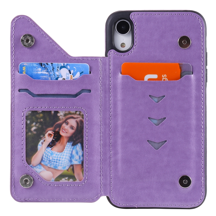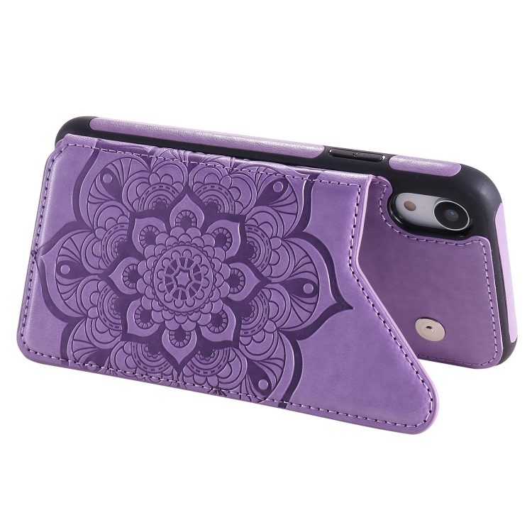 Funda Protectora iPhone Xr Patrón Flores Soporte Ranuras Tarjetas Marco Fotos (Púrpura)