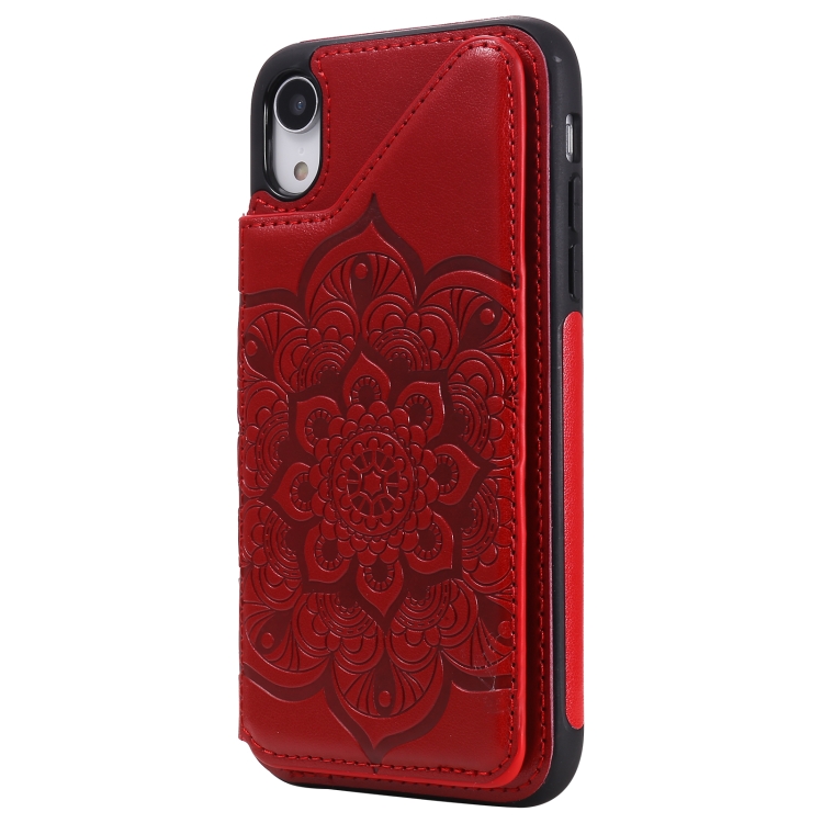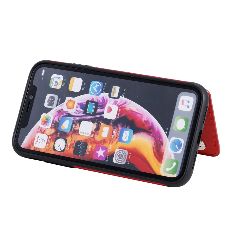 Funda Protectora para iPhone Xr con Soporte Ranuras Tarjetas y Marco de Fotos (Rojo)