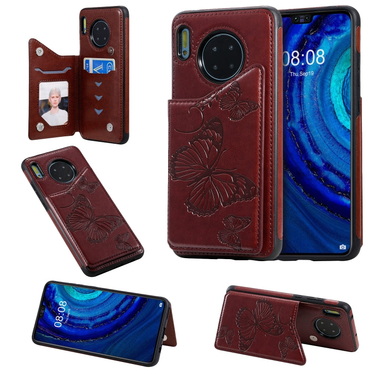 Funda Protectora Huawei Mate30 Patrón Relieve Mariposa con Soporte Ranuras Tarjetas Marco Fotos (Marrón)