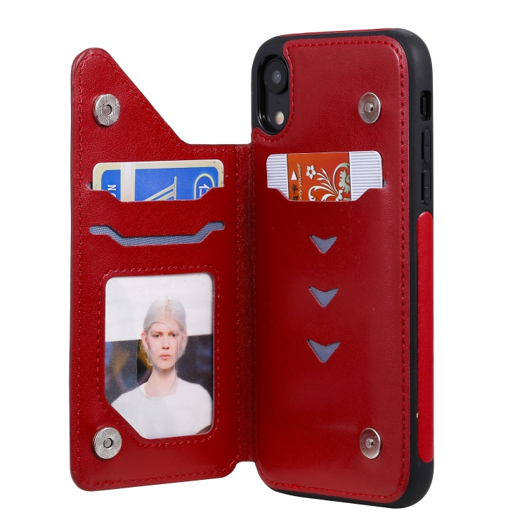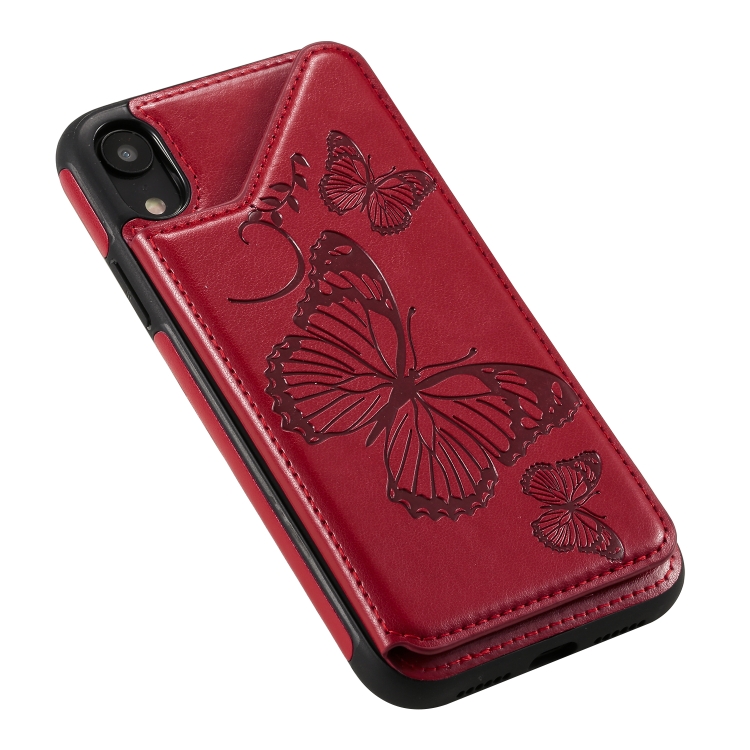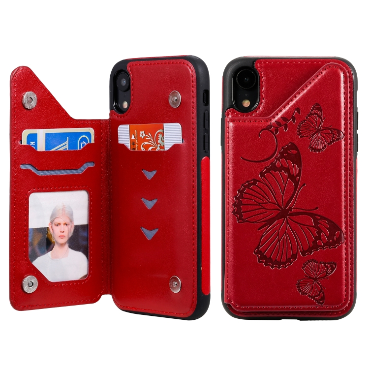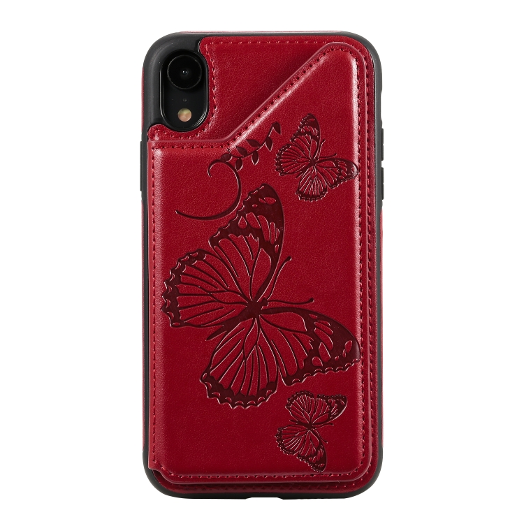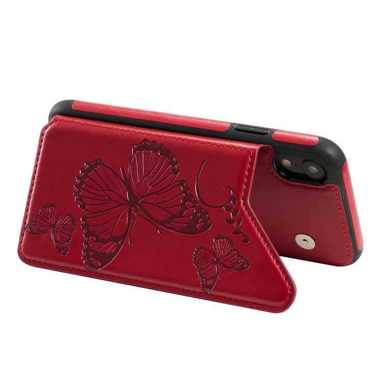 Funda Protectora iPhone Xr Patrón Mariposa Soporte Tarjetas Marco Fotos (Rojo)