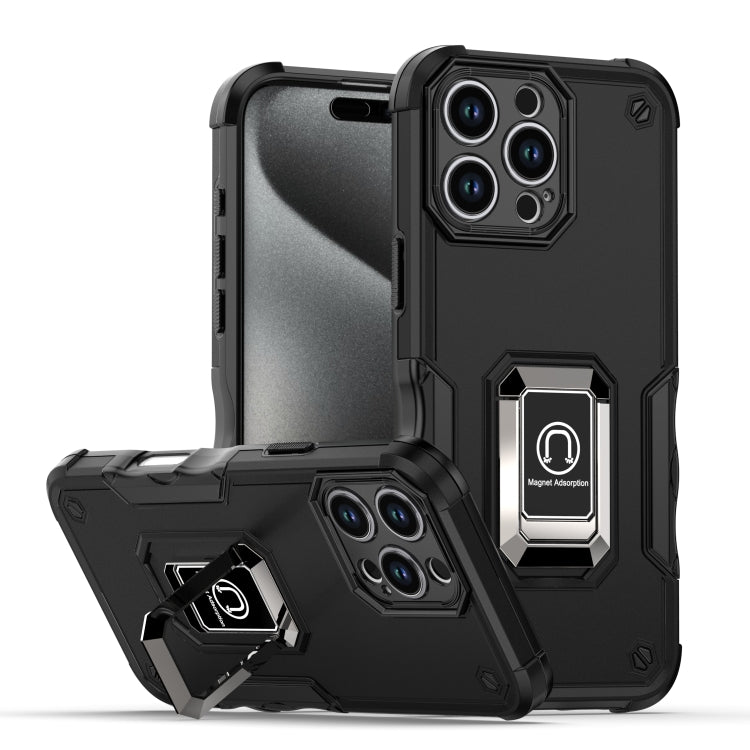 Funda Protectora para iPhone 16 Pro Antideslizante a Prueba de Golpes con Soporte de Anillo (Negro)
