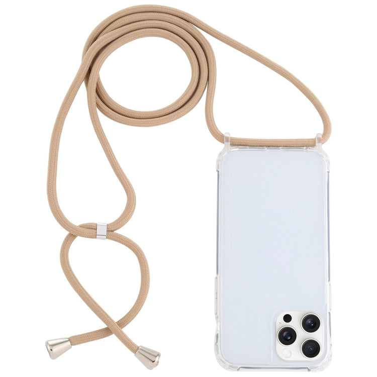 Funda Protectora para iPhone 16 Pro Acrílico Transparente a Prueba de Golpes con Cordón (Camello)