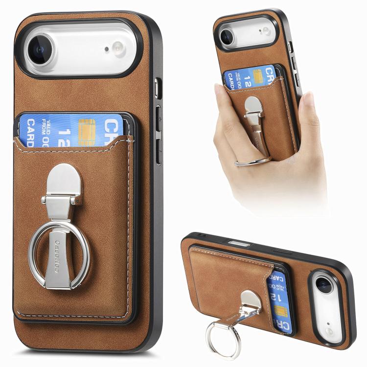 Funda retro plegable con anillo y tarjetero para iPhone Air (marrón)