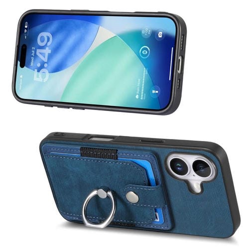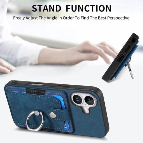 Funda tipo cartera con anillo y tarjetero para iPhone 17 (azul)