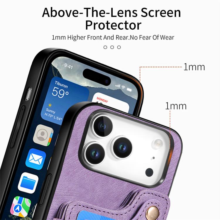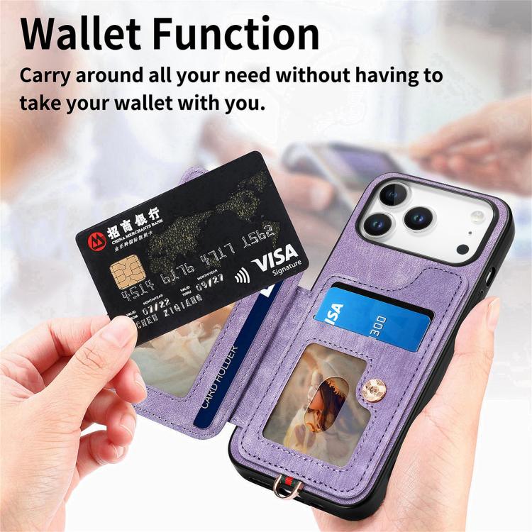 Funda tipo cartera con anillo y tarjetero para iPhone 17 Pro Max, estilo retro, con textura de piel (morado)