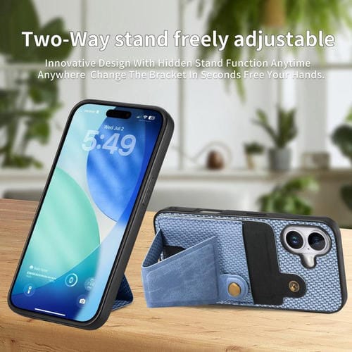 Funda tipo cartera de fibra de carbono con tarjetero en forma de K para iPhone 17 (azul)