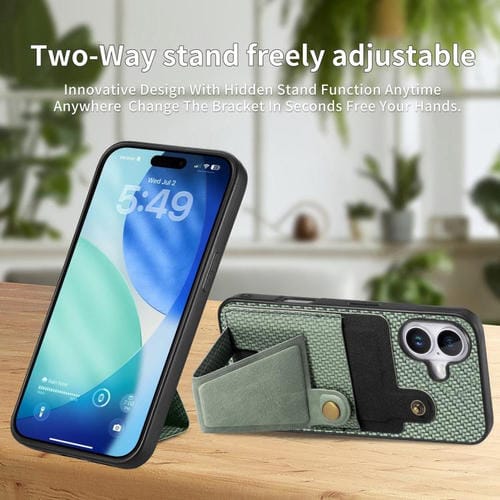 Funda tipo cartera de fibra de carbono con tarjetero en forma de K para iPhone 17 (verde)
