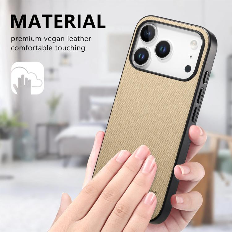 Funda trasera de piel y sarga para iPhone 17 Pro Max (caqui)