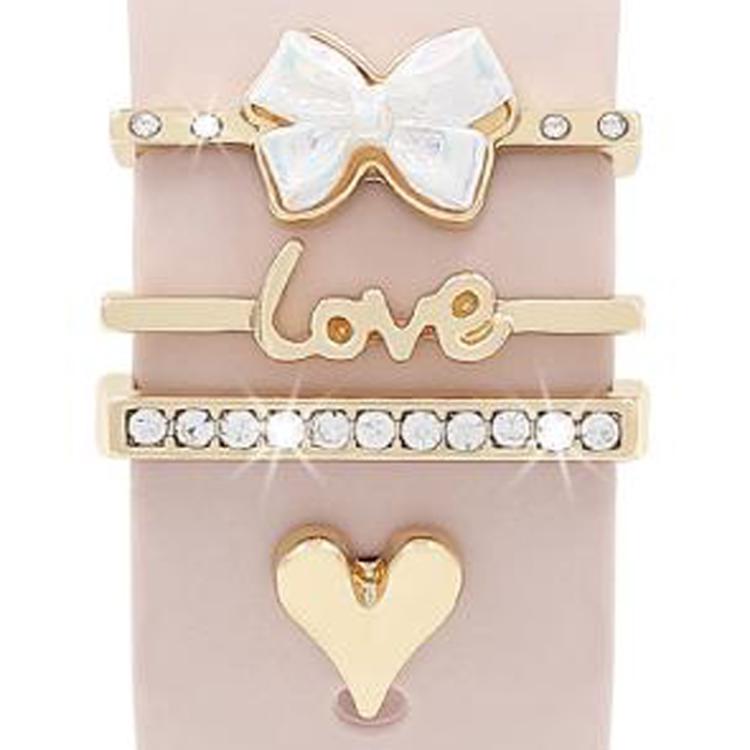 Juego de 4 correas de silicona universales para reloj inteligente, accesorios de metal con forma de corazón dorado.