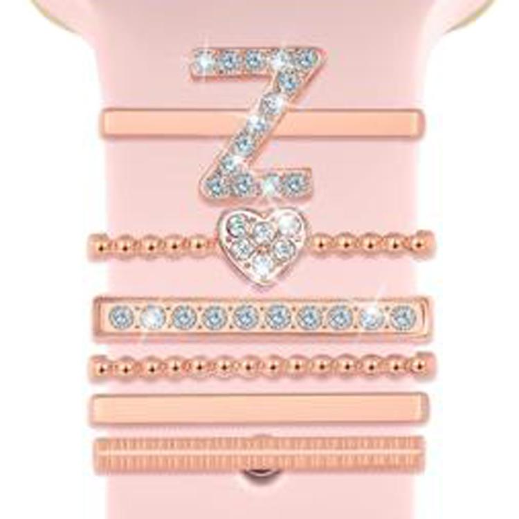 Juego de 6 correas de silicona universales para reloj inteligente, anillos decorativos de metal, talla Z (oro rosa)