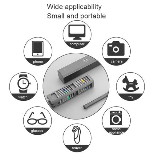 El Juego de Cuchillos de Tornillo Verdeer Serie 40 en 1 es una herramienta profesional diseñada para tareas de mantenimiento y desmontaje. Este set compacto y Portátil incluye una amplia variedad de destornilladores fabricados en aleación de acero S2, garantizando durabilidad y precisión en cada uso. Su diseño incorpora un barril doble de aluminio con fuerte adsorción para evitar caídas, y cabezas magnéticas que facilitan la manipulación de tornillos pequeños. El mango cuenta con almacenamiento integrado y una Tapa giratoria superior que mejora la ergonomía y funcionalidad. Compatible con múltiples dispositivos como ordenadores, Cámaras, juguetes, electrodomésticos, afeitadoras, gafas, Relojes y Teléfonos Móviles, este Juego es ideal para usuarios que reparan por cuenta propia y profesionales del sector técnico.