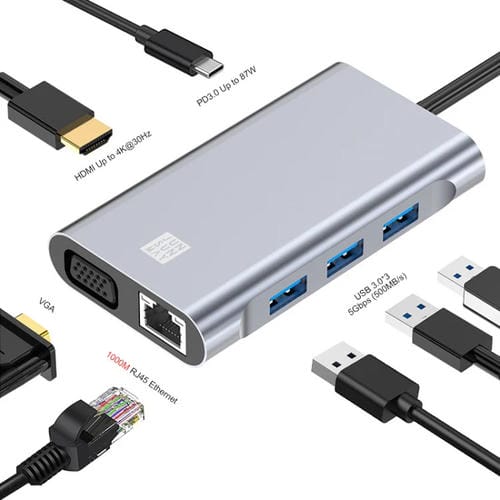 El Adaptador estación de acoplamiento Junsunmay 7 en 1 Tipo-C a 4K HDMI VGA 1000M Ethernet USB C Hub es un dispositivo multifuncional diseñado para ampliar la conectividad de equipos con Puerto USB Tipo-C. Compatible con una amplia variedad de laptops, tablets y smartphones que cuentan con esta interfaz, este hub permite conectar múltiples periféricos y dispositivos externos a través de sus diversos Puertos. Su función principal es ofrecer una solución integral que combina transferencia de datos, salida de video en alta definición y Conexión de red estable, facilitando el trabajo y ocio en entornos Digitales que requieren versatilidad y rendimiento.