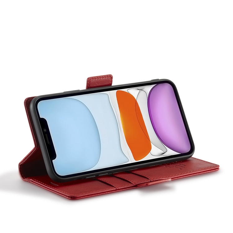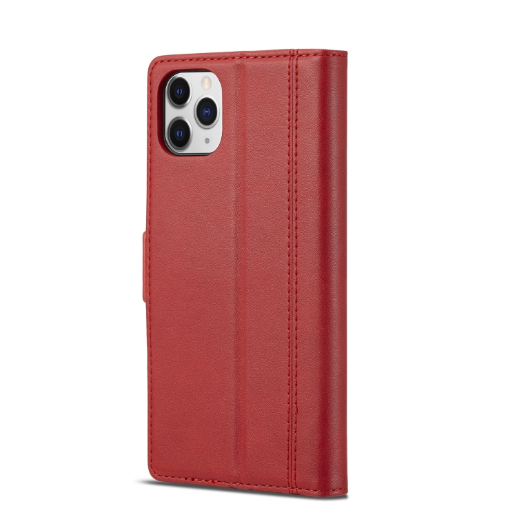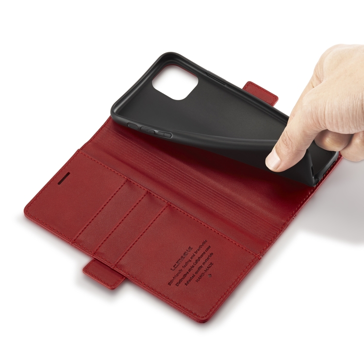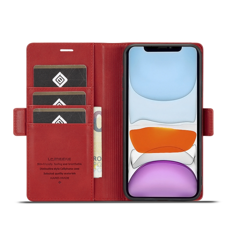Funda para iPhone 11 Pro Lc.Imeeke Hebilla Magnética Pu TPU Tapa Horizontal con Soporte y Billetera (Rojo)