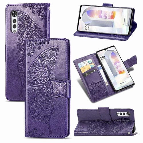 Funda Cuero Horizontal LG Velvet 2 Pro Mariposa Amor Flores Soporte Ranuras Billetera Cordón (Dark Purple)