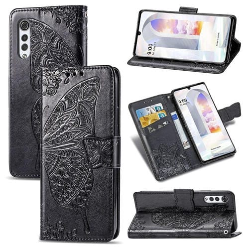 Funda Cuero Horizontal LG Velvet 2 Pro Mariposa Amor Flores En Relieve con Soporte y Ranuras (Negro)