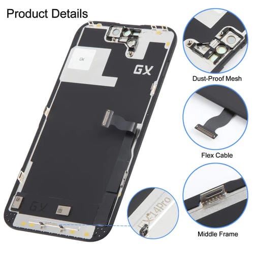 - 1x Pantalla Completa OLED GX rígida iPhone 14 Pro con Digitalizador Ensamblaje Completo