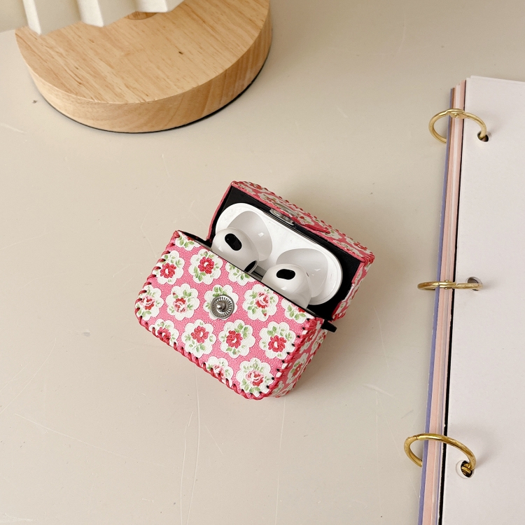 Estuche para Auriculares Inalámbricos Airpods 3 Cuero PU (Pequeña Flor Roja)