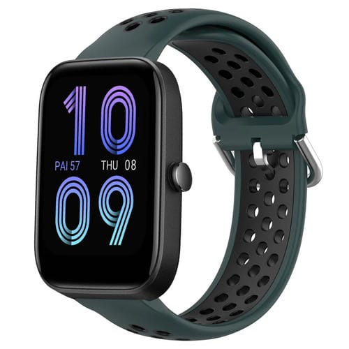 Correa de Reloj para Amazfit Bip3 20mm Silicona Deportiva Transpirable Perforada (Verde Oliva + Negro)
