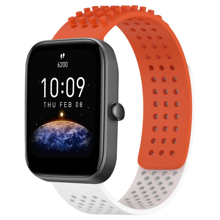 Correa de Reloj Amazfit Bip3 Silicona Puntos 3D Transpirable Orificios 20mm (Naranja + Blanco)