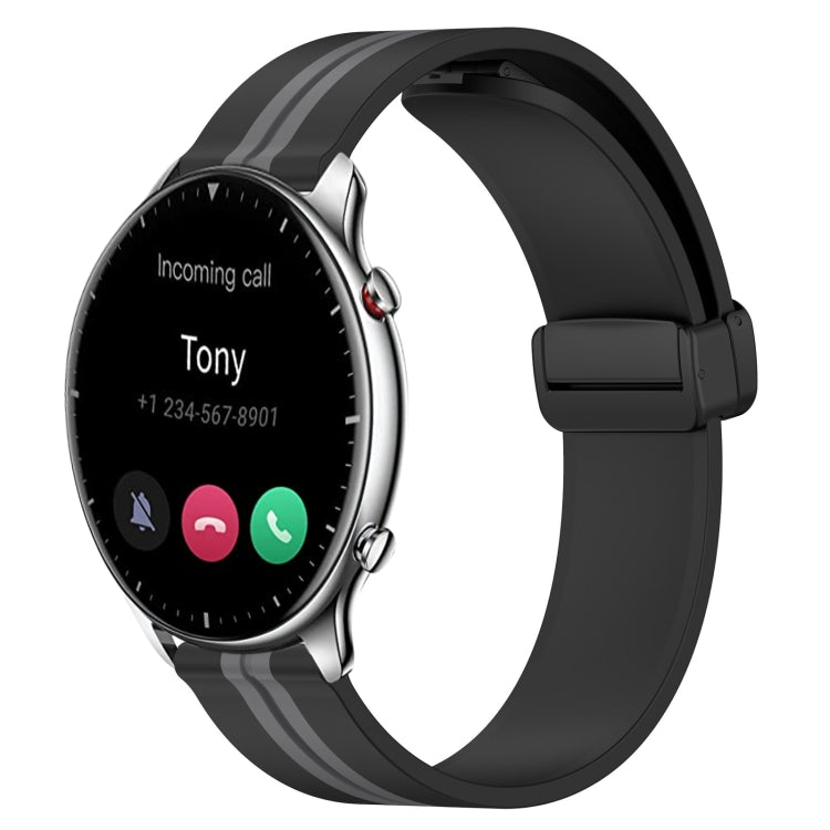 Correa de Reloj de Silicona para Amazfit GTR 2 22mm con Cierre Magnético Plegable (Negro + Gris)