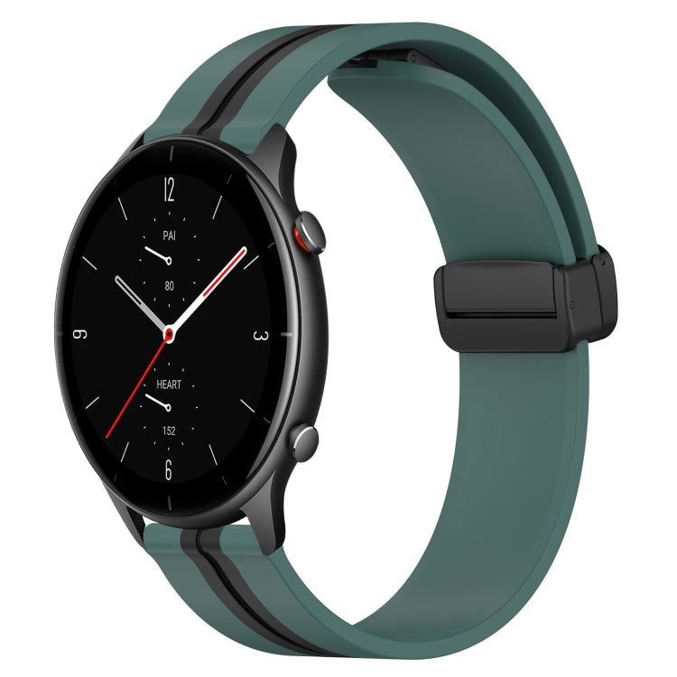 Correa de Reloj Amazfit GTR 2E 22mm Silicona Cierre Magnético Plegable (Verde Oliva + Negro)