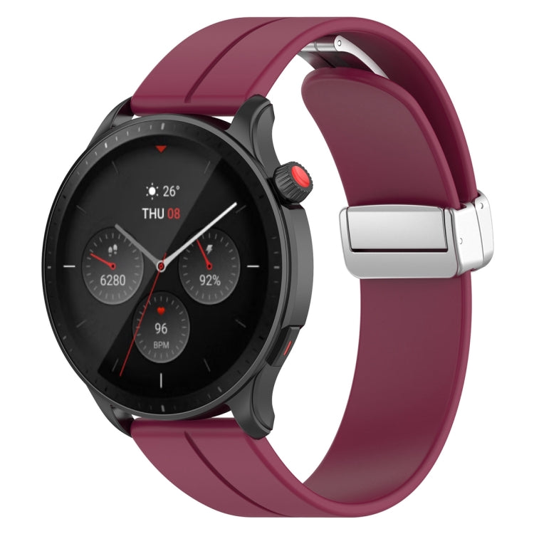 Correa de Reloj Amazfit GTR 4 Silicona con Cierre Plegable Magnético Hebilla Plateada (Rojo Vino)
