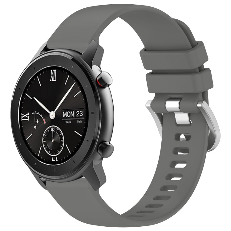 Correa de Silicona para Amazfit GTR 42mm y GTS 20mm con Hebilla Plateada (Gris)