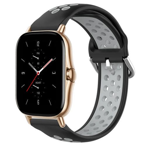 Correa de Reloj Amazfit GTS 2 20mm Silicona Deportiva Transpirable Perforada (Negro + Gris)