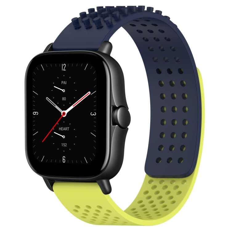 Correa de Silicona para Amazfit GTS 2 con Puntos 3D Transpirables y Orificios 20mm (Azul Medianoche + Verde Lima)