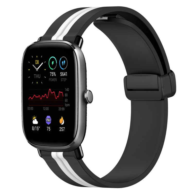 Correa de Reloj Silicona para Amazfit GTS 2 Mini 20mm con Cierre Magnético Plegable (Negro + Blanco)