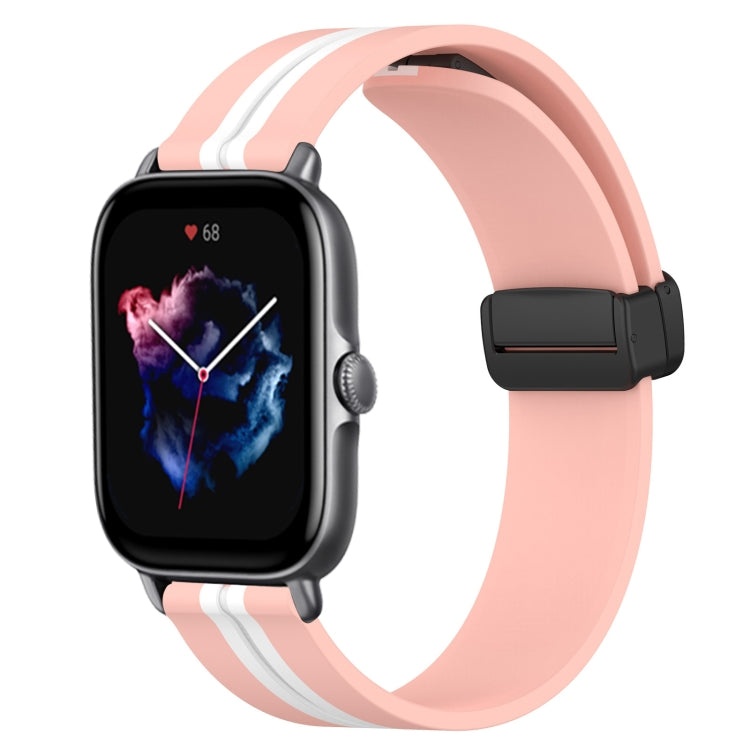 Correa de Reloj para Amazfit GTS 3 20mm Silicona con Cierre Magnético Plegable (Rosa + Blanco)