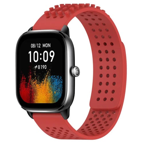 Correa de Silicona para Amazfit GTS 4 Mini con Puntos 3D Transpirables y Orificios 20mm (Rojo)