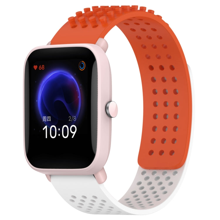 Correa de Reloj Amazfit Pop Pro silicona con puntos 3D transpirables orificios 20mm (Naranja + Blanco)