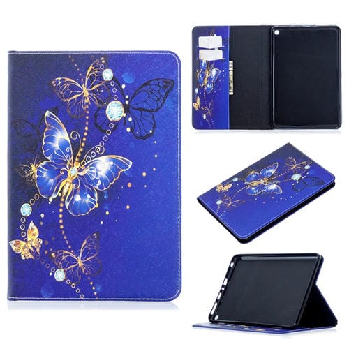 Funda de Cuero para Amazon Kindle Fire HD8 (2020) con Soporte, Ranuras para Tarjetas y Billetera (Mariposa Púrpura)