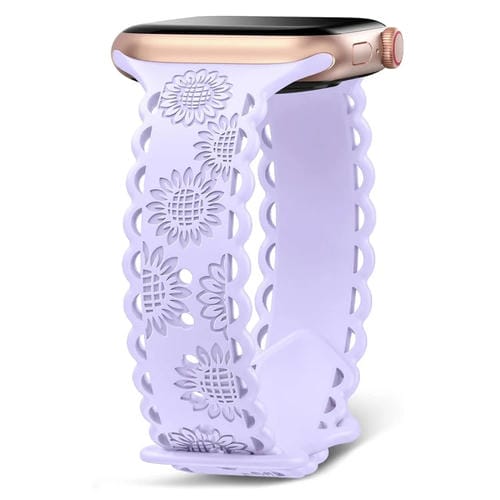 Para Apple Watch Series 7 Correa de Reloj de Silicona con Relieve de Girasol de Encaje de 41mm (Púrpura Lavanda)