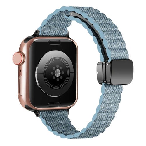 Correa para Apple Watch Series 9 41mm con Hebilla Plegable Magnética y Ondulación de Agua (Azul Vaquero)