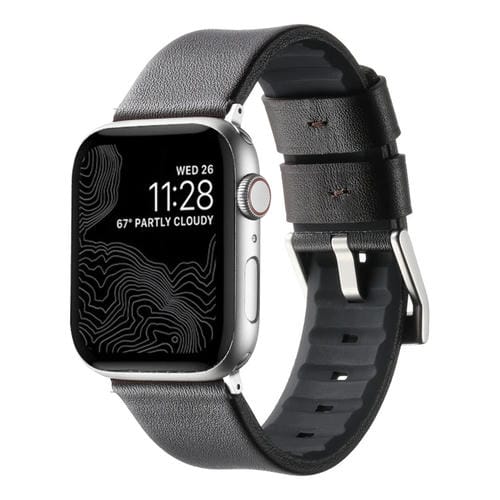 Correa para Apple Watch Series 9 41mm Silicona y Cuero Genuino (Hebilla Plateada de Café)