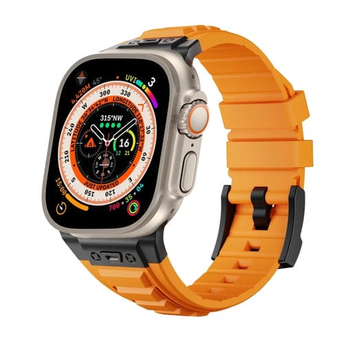 Correa de Silicona para Apple Watch Ultra 2 con Conector de Metal 49mm (Naranja + Hebilla Negra)
