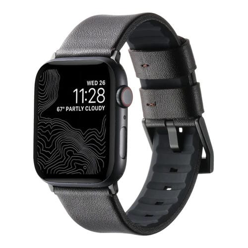 Correa para Apple Watch Ultra 2 49mm Silicona Híbrida Cuero Genuino (Café, Hebilla Negra)