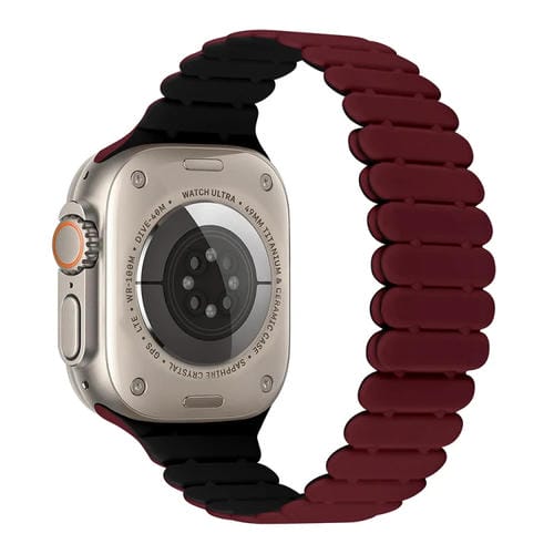 Correa para Apple Watch Ultra 49mm Silicona Magnética Bambú (Rojo Vino Negro)