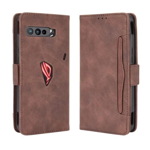 Estuche de Cuero para Asus Rog Phone 3 Zs661Ks con Diseño de Pantorrilla y Ranura para Tarjeta (Marrón)