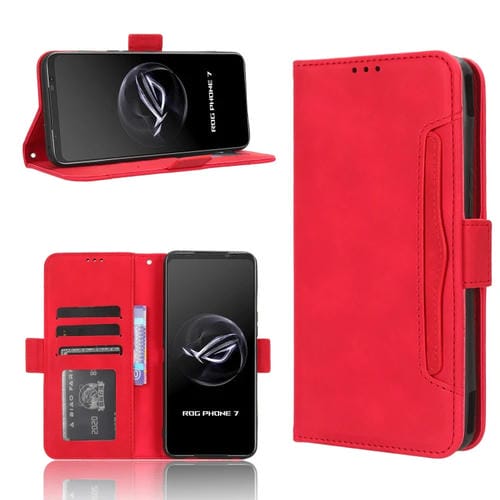 Funda de Cuero para Asus Rog Phone 7 con Skin Feel y Ranuras para Tarjetas (Rojo)