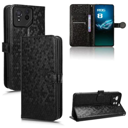 Funda de Cuero para Asus Rog Phone 8 con Textura de Punto de Panal (Negro)