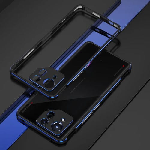 Protector de Lente + Estuche con Marco de Metal para Asus Rog Phone 8 (Negro Azul)